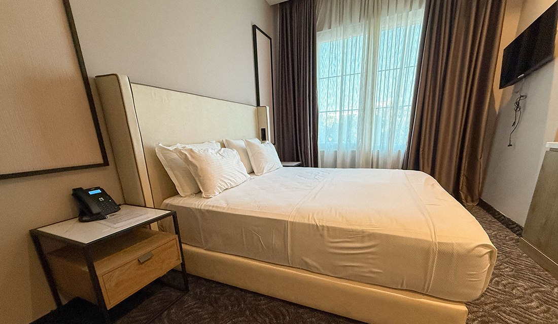Sve sobe hotela su moderno opremljene, imaju balkon (bez pogleda ka moru), udobne ležajeve, garderobere, sopstveno kupatilo sa osnovnim toaletnim priborom, klima uređaj, sef, mini frižider i krevetac za bebu na zahtev.
